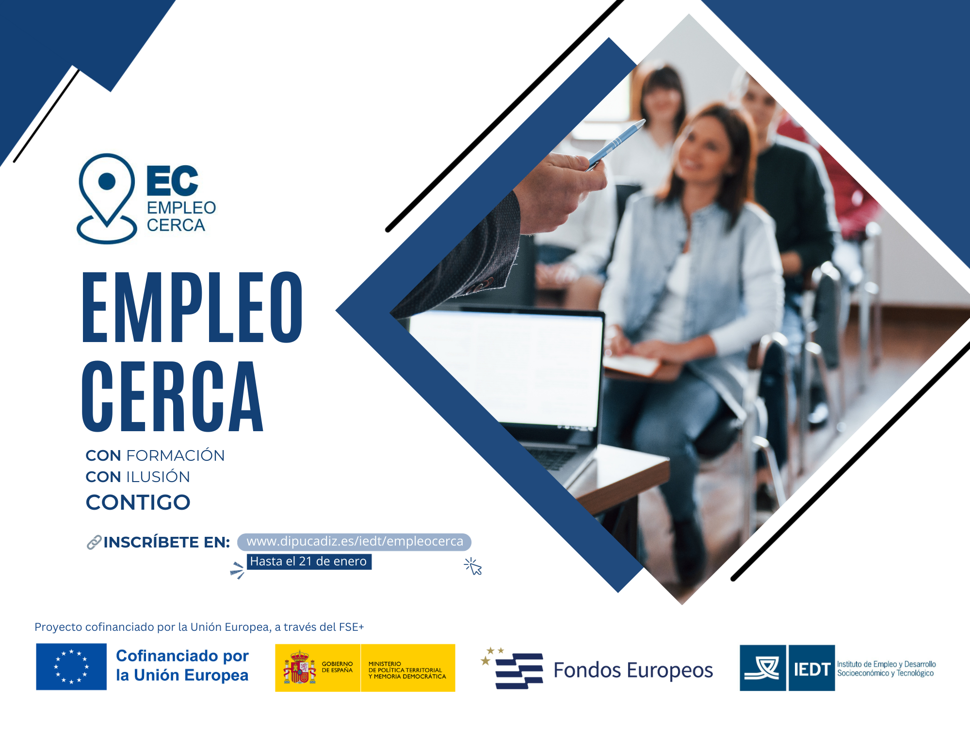 El Ayuntamiento de Barbate informa de la puesta en marcha en el municipio del programa ‘Emplea Cerca’, una iniciativa promovida por el Instituto de Empleo y Desarrollo Socioeconómico y Tecnológico (IEDT) de la Diputación de Cádiz, cofinanciada por el Fondo Social Europeo Plus de la Unión Europea, con financiación complementaria del propio IEDT.