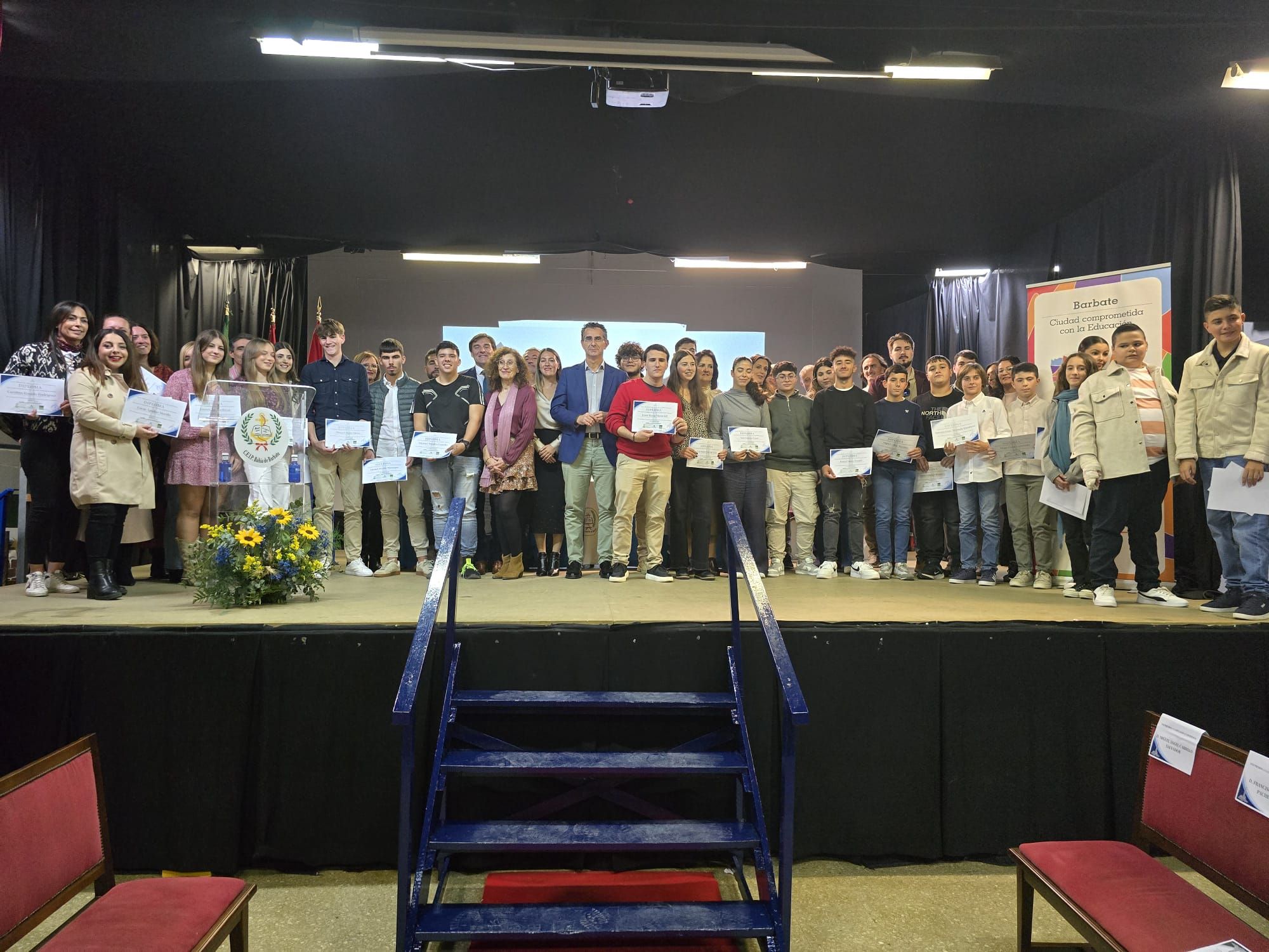 A continuación se procedió a la entrega de los reconocimientos al alumnado de Bachillerato en los que fueron premiado Ramón Sánchez Núñez, Manuel Mera Muñoz, Carolina Rosado Rodríguez y Lucía Aguilar Morillo, esta última de aldultos, del IES Trafalgar; y Nayara Ortega Mera, Nayara Amaya Varo y Pedro Vidal Guerrero, del IES Torre del Tajo. Debido a que todos ellos se encuentran ya estudiando carreras universitarias, en su representación acudieron con sus padres, en la mayoría casos.