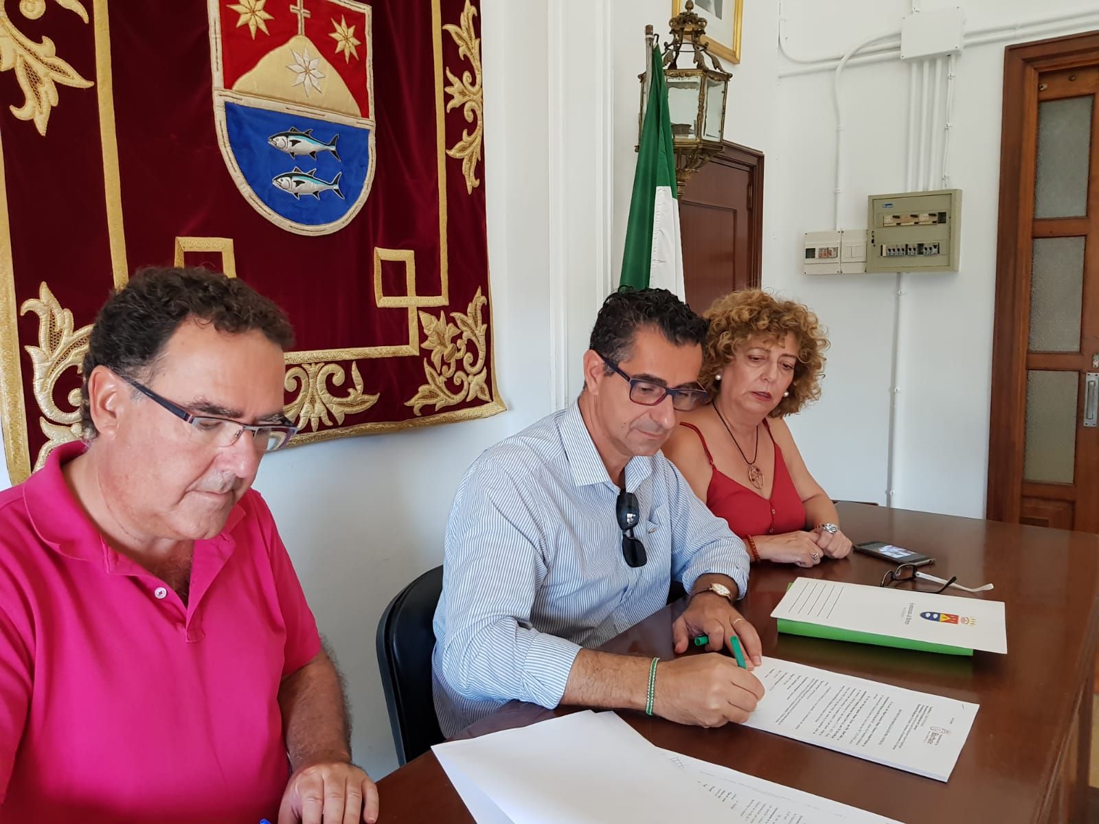 El alcalde de Barbate, Miguel Molina, y la delegada de Servicios Sociales, Ana Pérez, han realizado hoy la firma del contrato para la redacción del Plan Local de Intervención de Zonas Desfavorecidas, que se pondrá en marcha en la localidad próximamente para la integración de las barriadas que presentan mayores problemas estructurales. El documento deberá tener el visto bueno de toda la Corporación Municipal por lo que pasará por el Pleno a la mayor brevedad posible.