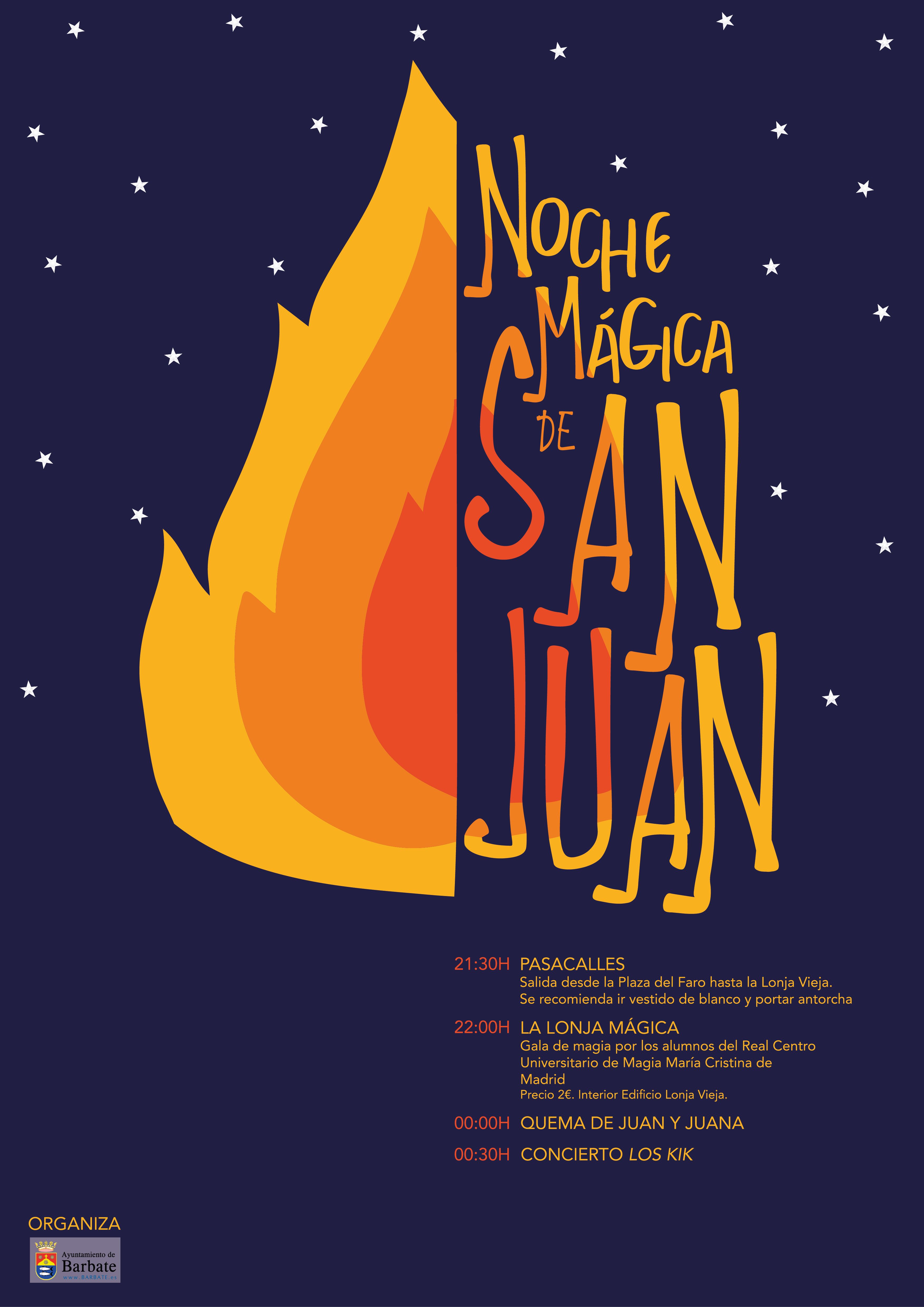 Las Delegaciones de Fiestas y Cultura del Ayuntamiento de Barbate han organizado la noche del próximo sábado, 23 de junio, una programación para la celebración de la Noche Mágica de San Juan, con la que se dará la bienvenida al verano. Los festejos comenzarán a las 21.30 horas con el Pasacalles que saldrá desde la Plaza del Faro hasta la Lonja Vieja, recorriendo todo el Paseo Marítimo con la caída del sol. Esta actividad está abierta a todos los barbateños, barbateñas y visitantes que quieran participar, por lo que se recomienda acudir vestido de blanco y portar una antorcha.