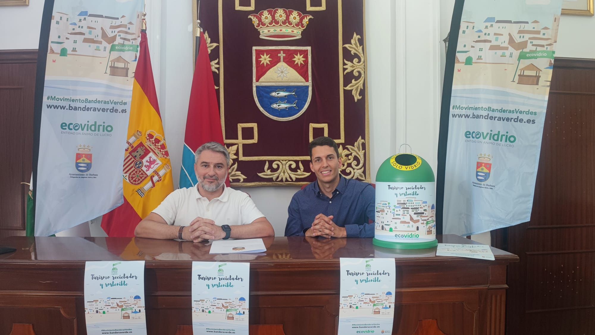 El delegado de Limpieza Viaria y RSU del Ayuntamiento de Barbate, Francisco Muñoz Jarillo; y el Hugo Recio, han presentado en rueda de prensa la participación de Barbate en la campaña.