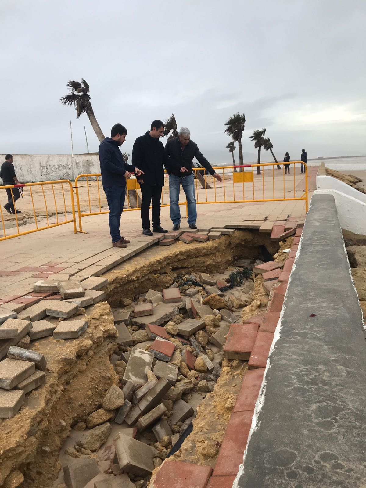 El paso de la borrasca Emma por el término municipal de Barbate ha dejado numerosos daños en la zona costera, provocados principalmente por las altas mareas y el fuerte oleaje que se ha producido en las últimas horas. El alcalde de Barbate, Miguel Molina, y el delegado de Presidencia, Javier Rodríguez han estado en los lugares más afectados por el temporal, como el Paseo Marítimo, aunque también se han desplazado a Zahara de los Atunes y a las pedanías de Los Caños de Meca y Zahora. Los representantes municipales han estado acompañados de personal del Grupo de Emergencias de Andalucía (GREA) 112, para valorar los daños.