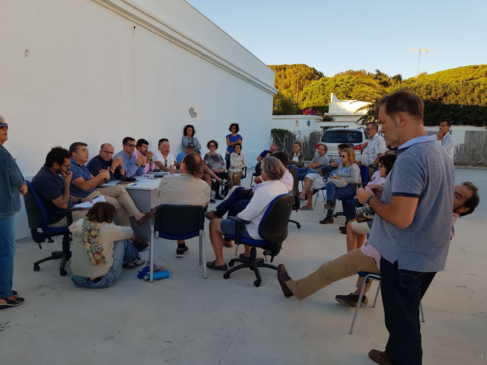 La reunión venía motivada por la inquietud vecinal de implantar en la zona la necesaria red de abastecimiento de agua que acabaría con los problemas de saneamiento en Los Caños de Meca. Esta iniciativa, impulsada también por el Ayuntamiento de Barbate, fue consultada por los habitantes y comerciantes de la pedanía en el encuentro, pudiendo plantear sus dudas directamente al responsable de la concesionaria, que explicó el planeamiento para Los Caños.