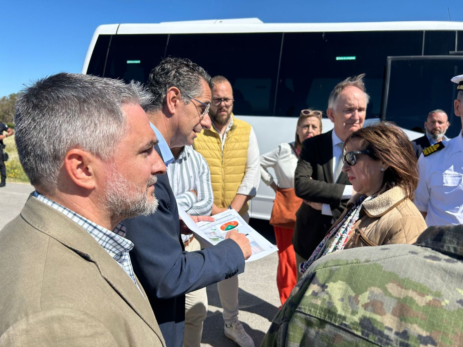 Miguel Molina se ha desplazado, junto a miembros del equipo de Gobierno, a las instalaciones de El Retín donde ha podido hablar unos minutos con la ministra sobre la importancia de que “el Gobierno de España atienda la petición de declaración de Especial Singularidad del Municipio”, precisamente, resaltando “la aportación de casi un 40 por ciento de nuestro término municipal a la Defensa Nacional y a la OTAN con los entrenamientos que se llevan a cabo en nuestro territorio”.