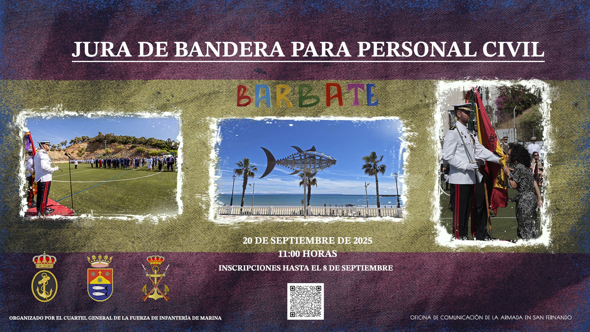 Barbate celebrará el próximo 20 de septiembre un acto de Jura de Bandera para personal civil, en el que los ciudadanos que así lo deseen puedan expresar de forma pública e individual su lealtad hacia España y su compromiso por defender los intereses colectivos.